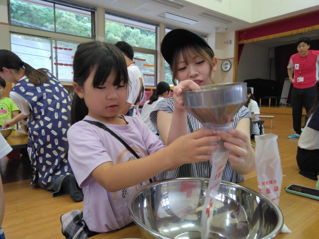 毎年、日本赤十字社長崎支部の方を招いて、災害時に危険となる場所(屋内・屋外)や、限られた物資でできるご飯の炊き方についてわかりやすく教えていただいています☝️