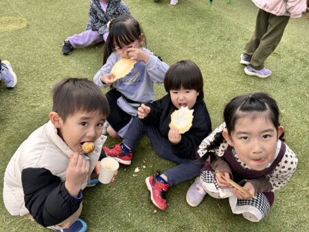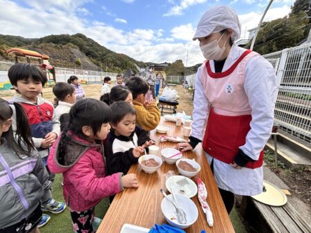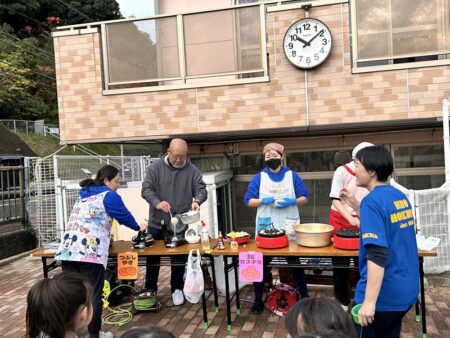 また、いつも美味しい給食やおやつを作ってくださっているシダックスの職員の方々も、鈴カステラとホットドリンクのコーナーに参加してくださいました💛