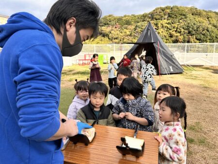 園庭には、ホットドリンクコーナー、つぶし焼きコーナー、鈴カステラコーナー、ホットサンドコーナー、顕微鏡で調べてみようコーナー、クリスマスツリーのオーナメント制作コーナーなど、子どもたちがワクワクするコーナーがずらりと並びました🎵