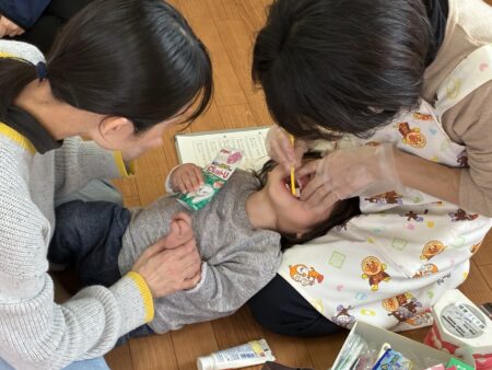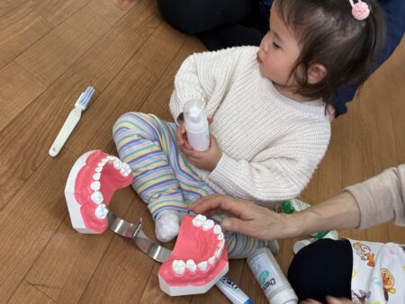 お知らせ TOP > お知らせ > ふれあいじかん(0歳児保育) ふれあいじかん(0歳児保育) 本日は ふれあいじかんを行いました。 ママ同士の情報交換や、保健師さん・歯科衛生士さんとの情報交換に話が盛り上がり大賑わいの時間となりました。 初めての子育て情報に「もっと早くしりたかった!」の連発!! まだまだ子育てスタートしたばかり!知れてよかったね!! 歯磨き指導もなくことなくできました! おおきな歯や歯ブラシに興味津々でした。 支援室:鶴﨑 2026.03.03