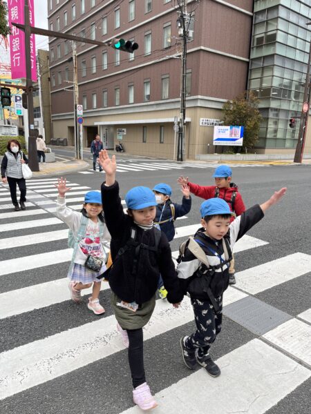 横断歩道もしっかり手を挙げて、タンタンのお約束をして渡りました。