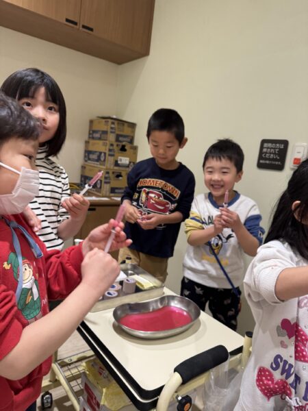 「せんせい大丈夫?」みんな心配しながら、職員が献血している姿をみました。
