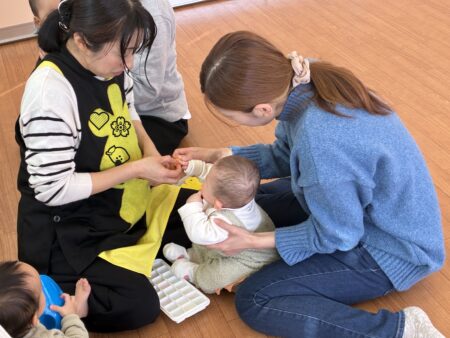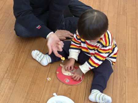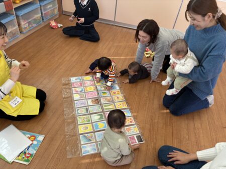 お知らせ TOP > お知らせ > 色で遊ぼうを行いました 色で遊ぼうを行いました 今日は4組の親子で色で遊ぼうを行いました。 親子でワイワイ楽しく賑わいながらの時間を過ごしました。 初めての色に刺激 大!!! ママと一緒に色に触れて嬉しそうでした。 本日のお制作は、『干支だるま制作』をしました。 メッセージカードは子どもたちも選びました。 カードに書かれたメッセージを読んでワイワイ賑やかな時間でした。 支援室:鶴﨑 2026.01.14