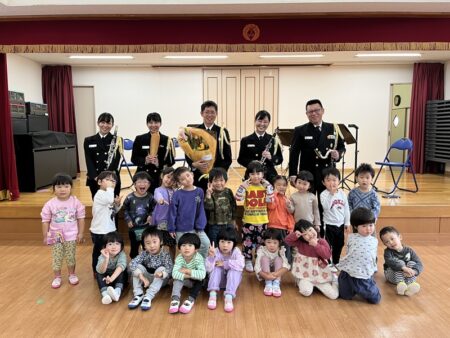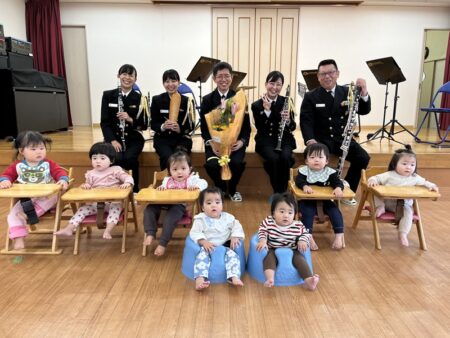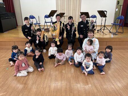 今年は、海上自衛隊佐世保音楽隊の皆さまをお招きし、0~5歳児のみんなでバスクラリネット、カホン、タンバリン、サスペンデッドシンバルなどの生演奏を楽しみました⚓🎵👶