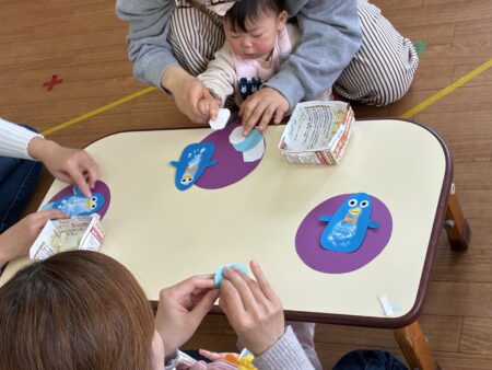 お知らせ TOP > お知らせ > 1.2.3歳児保育を行いました 1.2.3歳児保育を行いました 本日は1.2.3歳児保育を行いました。 (1.2.3歳児保育となっていますが、0歳児さんも参加OK!) 本日は足型をとりました。初めての足型に挑戦したお友達も数名いて、くすぐったさに足をもぞもぞさせたり、びっくりして泣いてしまう姿もありました。それでも、できあがったかわいい足形を見てママたちは大喜び。小さな足形は、ペンギンへとかわいく大変身しました。 支援室:鶴﨑 2026.02.05