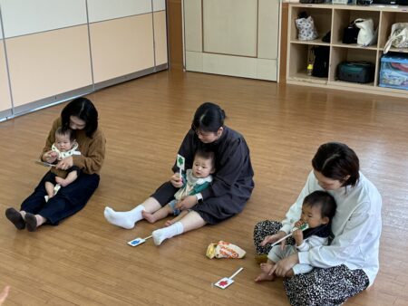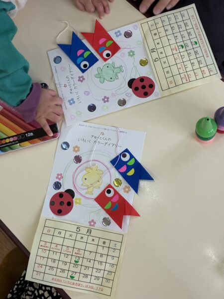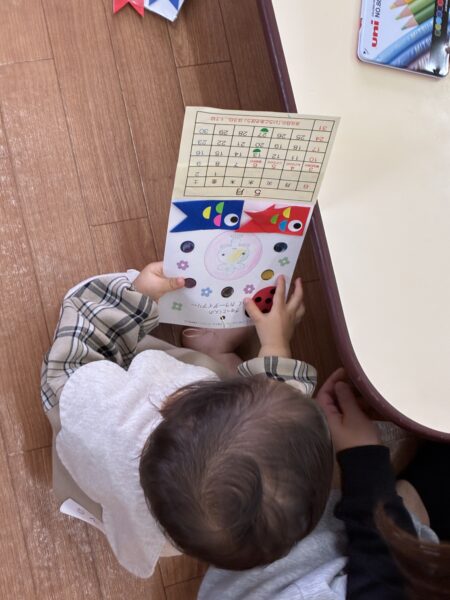 お知らせ TOP > お知らせ > いろとあそぼうを行いました いろとあそぼうを行いました 今日は「いろとあそぼう」を行いました。色から食べ物を連想すると、子どもたちは思わずよだれを垂らすほど楽しんでいて、その様子をママたちも嬉しそうに見守っていました。 また、5月のカレンダー作りにも取り組みました。親子で一緒にお絵描きを楽しんだり、ママが夢中になって制作に取り組んだりと、終始あたたかな雰囲気の中で過ごしました。 支援室:鶴﨑 2026.04.22